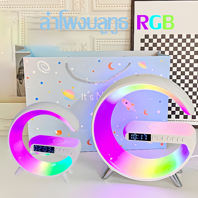 ชื่อสินค้า: ลำโพงบลูทูธ 15วัตต์ LED บรรยากาศ RGB แสงชาร์จไร้สายนาฬิกาปลุกโคมไฟตั้งโต๊ะลำโพงบลูทูธนอนโคมไฟพระอาทิตย์ขึ้นตื่นขึ้นมาโคมไฟที่มีการควบค