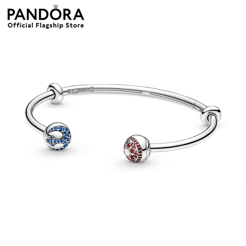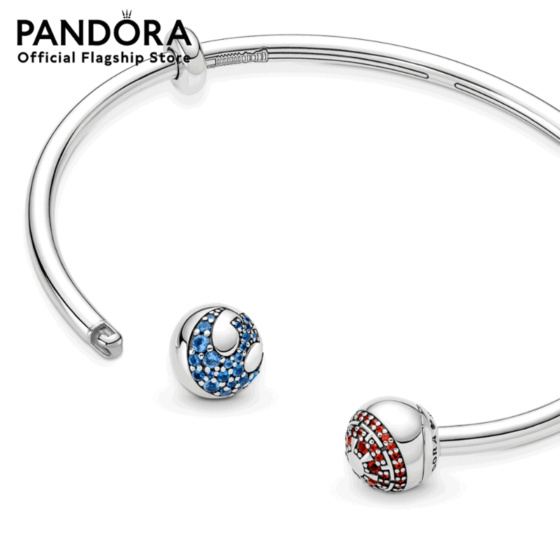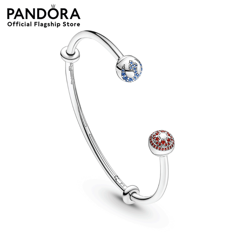 ชื่อสินค้า: Star Wars sterling silver open bangle with salsa red and night blue crystal and silicone stoppers and interchangeable end cap