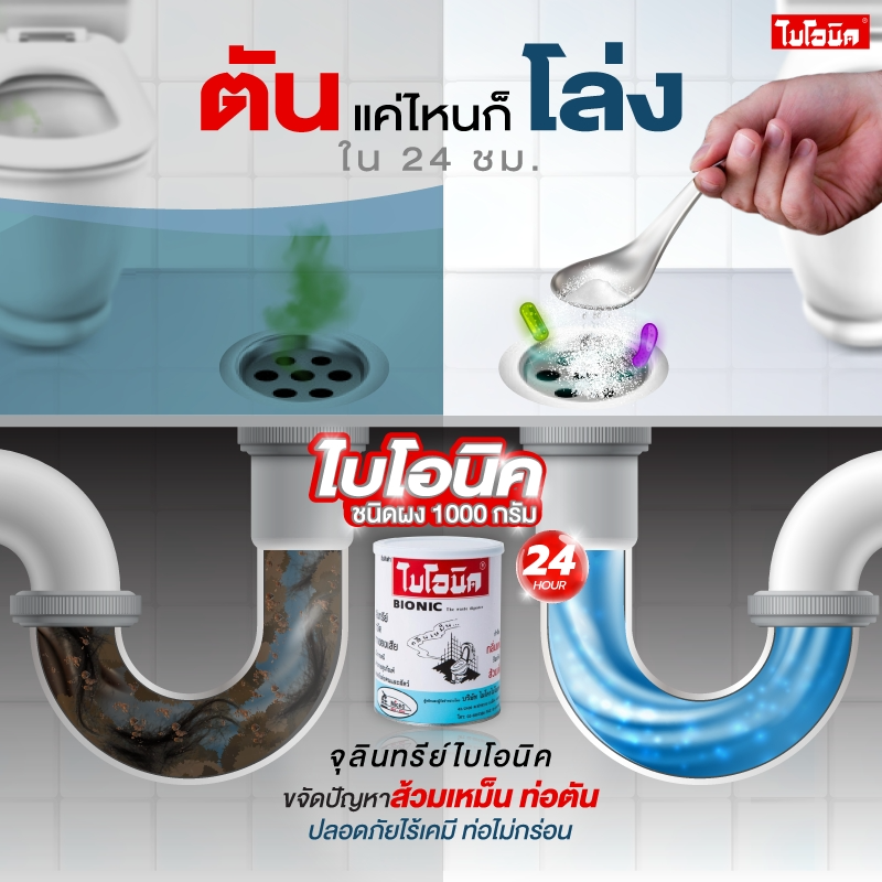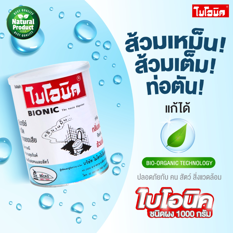 ชื่อสินค้า: BIONIC ไบโอนิค 1000 กรัม 1 กระป๋อง จุลินทรีย์กำจัดกลิ่นเหม็น ย่อยสลายกากของเสียห้องน้ำ ส้วมเหม็น ส้วมตัน ท่อตัน ผงจุลินทรีย์
