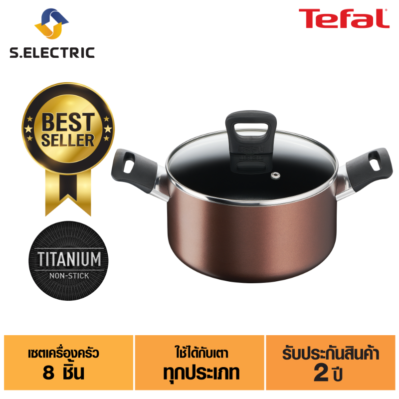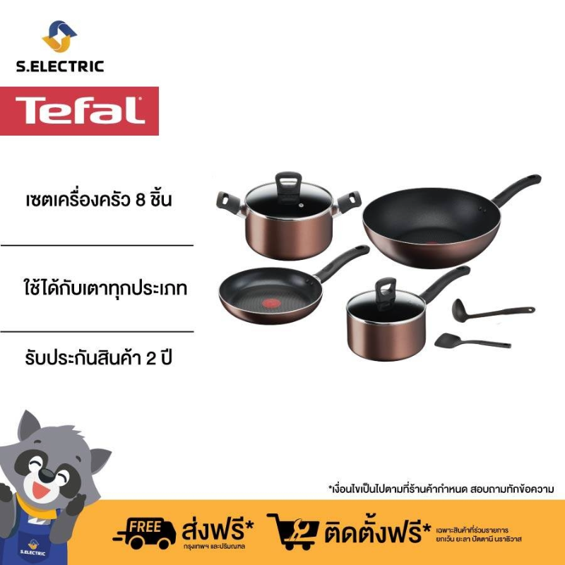 ชื่อสินค้า: [ส่งฟรี] TEFAL ชุดเช็ตหม้อกระทะ 8 ชิ้น Day By Day รุ่น G143S895 ก้นกระทะอินดักชั่น สามารถใช้ได้กับเตาทุกประเภทรวมทั้งเตาแม่เหล็กไฟฟ้า ประกัน 2 ปี